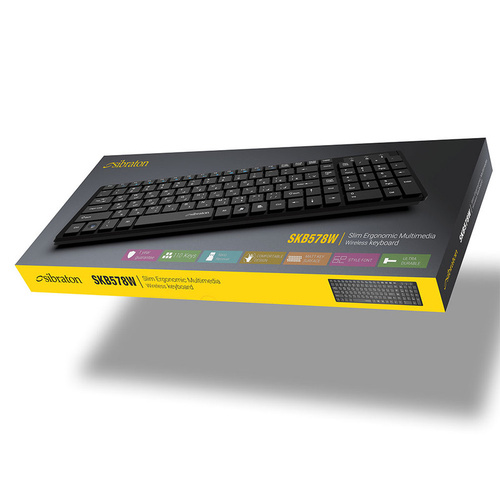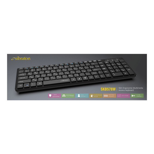 کیبورد سیبراتون مدل skb578w، بدون سیم و اتصال آن از نوع دانگل USB (2.4 گیگاهرتز) میباشد. این کیبورد دارای 110 کلید برای انجام فعالیتهای کامپیوتری است. کیبورد سیبراتون مدل skb578w برای استفادههای روزمره مناسب میباشد و دارای محدوده عملیاتی 10 متر است. از دیگر ویژگیهای این محصول، طراحی کلیدها به گونهای که امکان تایپ کردن در مدت زمانی طولانی را فراهم می کند، دسترسی راحت به تمامی کلید های کاربردی، طراحی نرم و سایلنت کلیدها، بادوام و دارای کلیدهای مات میباشد. امروزه محصول کمپانی skb578w سیبراتون به دلیل داشتن کلیدهای بی صدا هنگام تایپ توجه بسیاری از کاربران را به خود جلب کرده و همین امر موجب شده تا به یکی از پرفروش ترین محصولات سیبراتون تبدیل شود.